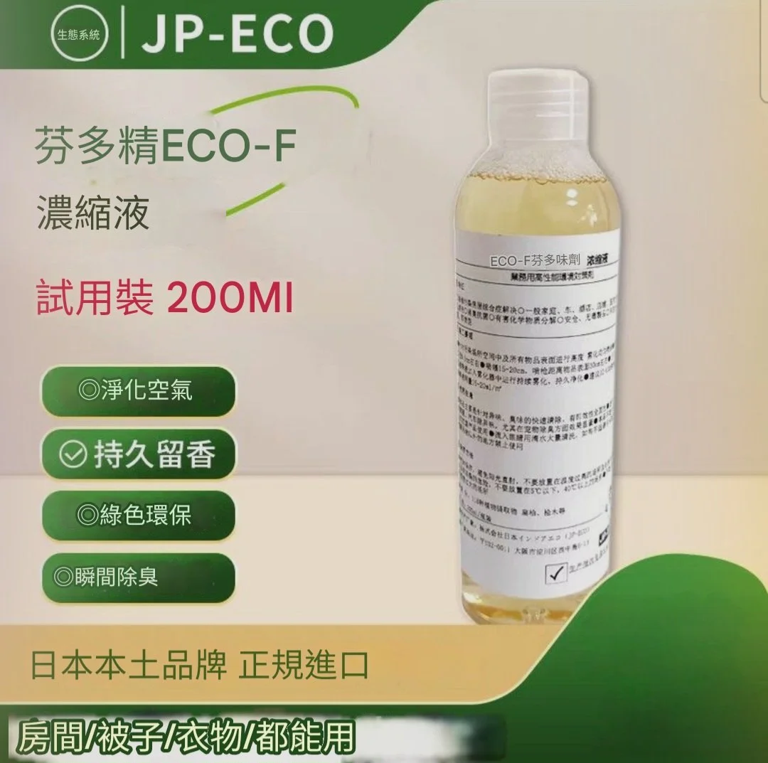 在家輕鬆除甲醛 › JP ECO - F. 芬多精濃縮液,除臭,除異味,除寵物異 味,家用,安全 JP ECO - F. 芬多精濃縮液,除臭,除異味,除寵物異 味,家用,安全 Sale Price: HK$220.00 Original Price: HK$320.00 JP ECO - F.芬多精濃縮液,強力除味,家用,安全,除臭 寵物專用去異味200ML,可按比例1:99 稀釋用作去除家中任何異味 JP ECO - F.芬多精濃縮液,強力除味,家用,安全,除臭 寵物專用去異味200ML,可按比例1:99 稀釋用作去除家中任何異味 Add To Cart Added!